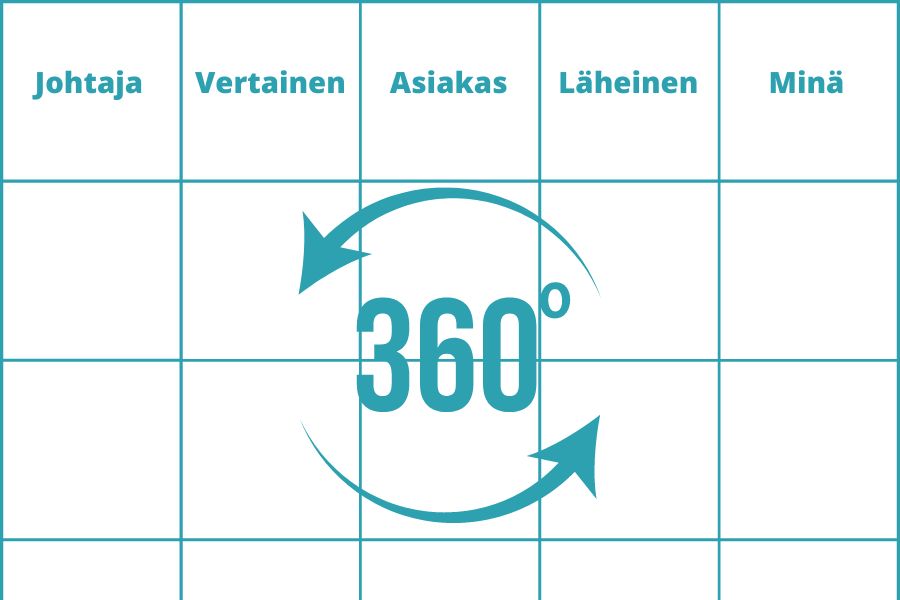 Ideana on tehdä 360-palaute mutta kuviteltuna. Tässä kerrot itse eri asemissa olevien ihmisten suulla asioita, joita he arvostavat sinussa. Palautteen antajat ovat: