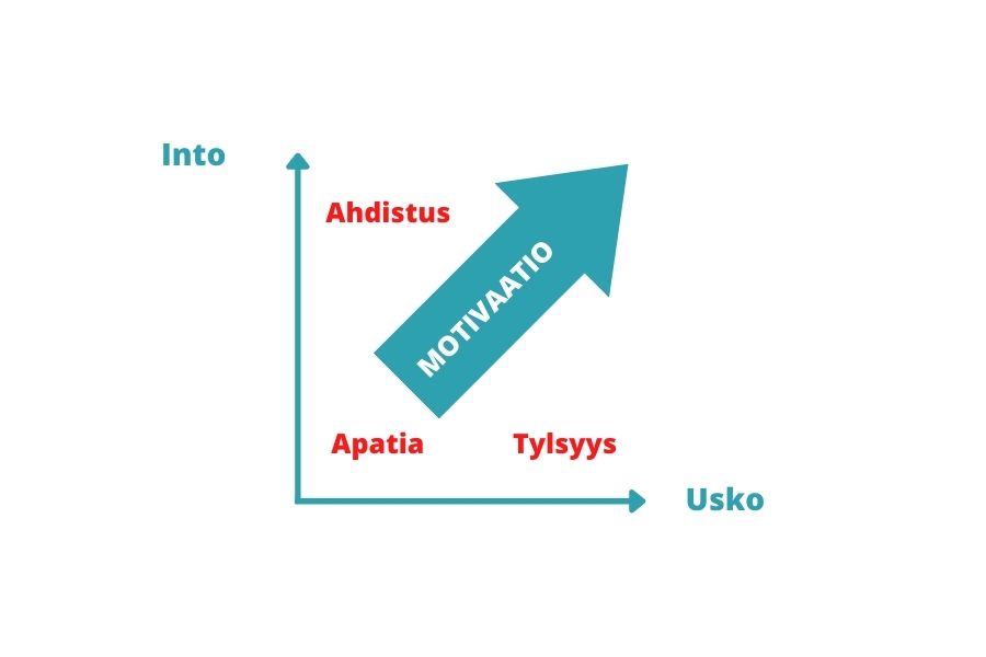Hyvä uutinen on se, että kun koetaan sekä intoa että uskoa, matkustetaan motivaatioputkessa kohti tavoitteita, mitä suuremmilla kertoimilla, sitä vauhdikkaammin!